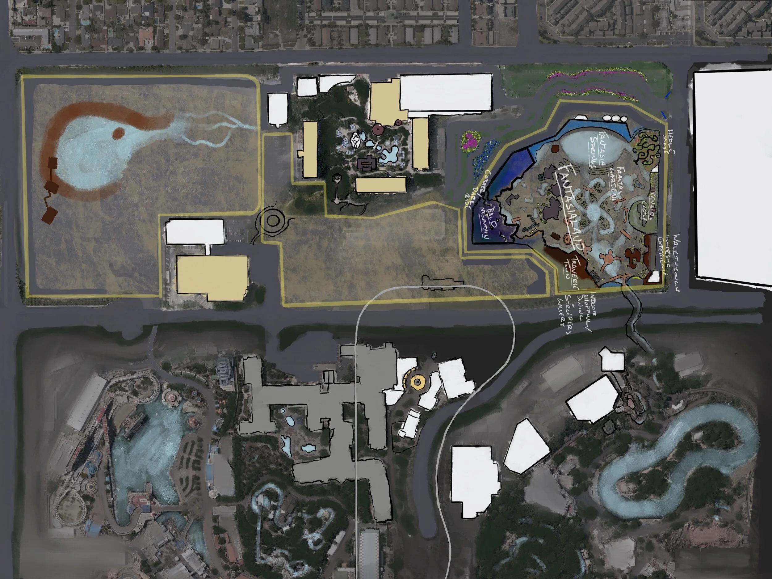 Fantasialand is an ongoing personal exercise in creativity, imagination, and engineering. Going off of the conceptual expansion plans for the DisneylandForward project, I have designed my own brand new theme park lands for the proposed expansion area of Disneyland and beyond.